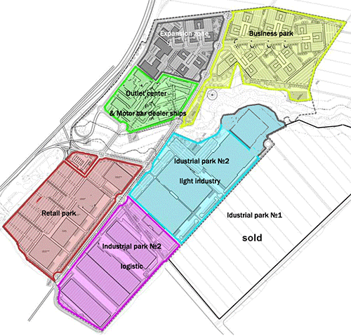 Итогом их работы стала концепция развития проекта, предполагающая реализацию нескольких функций - большой торговой зоны, офисной недвижимости, индустриального парка.